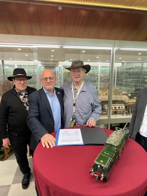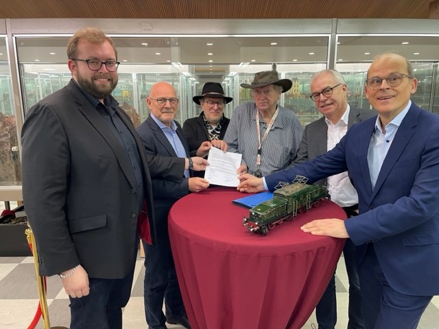 Gemeinsam mit Verkehrsminister Winfried Hermann, Landrat Edgar Wolff und Kreissparkassenchef Hariolf Teufel reiste Oberbürgermeister Alex Maier am vergangenen Montag nach Belgien, zum bekannten Märklin-Sammler Frans Bevers. Im Gepäck einen „Letter of Intent“, der die Weichen stellen soll, um das langverfolgte Ziel zu erreichen – Bevers‘ Sammlung nach Göppingen holen. „Wir sind glücklich, unseren Beitrag dazu leisten zu können, einen bedeutenden Teil des kulturellen Erbes Göppingens und des Landes Baden-Württemberg in die Hohenstaufenstadt zurück zu holen.“ erklärt Verkehrsminister Winfried Hermann bei der Unterzeichnung in Brüssel. „Märklin und Göppingen sind zwei Seiten einer Medaille, deshalb muss auch Göppingen Bewahrer dieses Erbes sein.“. Der Verkehrsminister unterschrieb den „Letter of Intent“ stellvertretend für die Landesregierung.