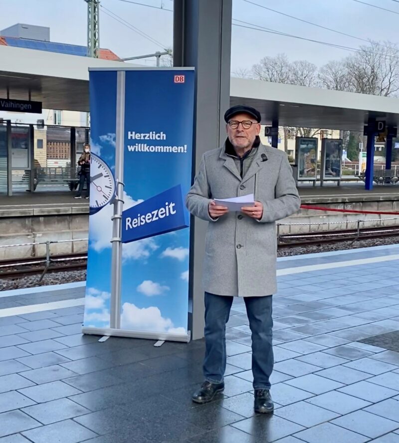 „Durch den Regionalhalt wird der Bahnhof hier in Vaihingen zu einem wichtigen Umsteigebahnhof für den öffentlichen Nahverkehr. Wir verknüpfen hier vor Ort den Fernverkehr mit S-Bahn, Stadtbahn, Busverkehr und in Zukunft möglicherweise auch mit einer Seilbahn. Für den Schienenknoten Stuttgart und viele ÖPNV-Nutzer ist das ein deutlicher Gewinn, weil die Menschen jetzt deutlich schneller zum Beispiel in Richtung Flughafen und Messe unterwegs sind “, erklärte Winfried Hermann, seines Zeichens Wahlkreisabgeordneter in Stuttgart-Vaihingen und Verkehrsminister für Baden-Württemberg, bei der Eröffnung.