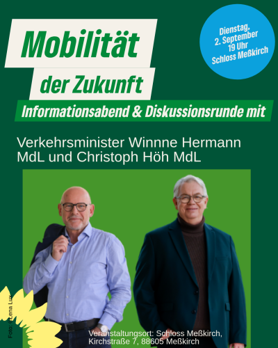 Auf gemeinsame Einladung des GRÜNEN Landtagsabgeordneten Höh und des GRÜNEN Kreisverbands Sigmaringen wird Verkehrsminister Winne Hermann MdL am Dienstag, den 2. September 2025, den Wahlkreis besuchen. Im Mittelpunkt stehen dabei konkrete Fortschritte und Perspektiven einer nachhaltigen Mobilität im ländlichen Raum.